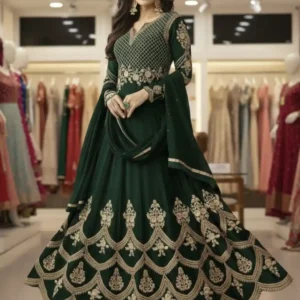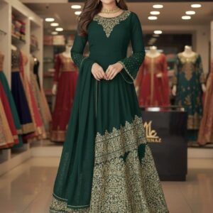 সেমি-স্টিচড জর্জেট ফ্লোর-টাচ আনারকলি – রাজকীয় এমব্রয়ডারি পার্টি ড্রেস